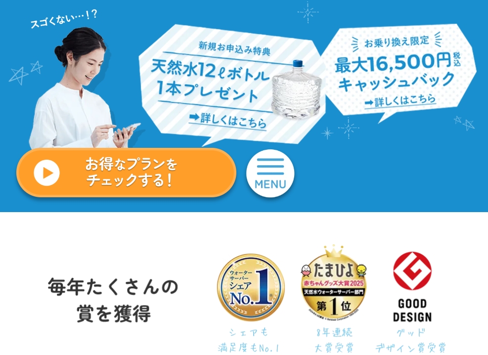 導入費用が安く、初めてウォーターサーバーを使う方にも安心して選ばれているブランドです。